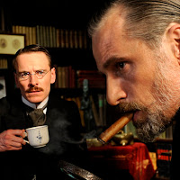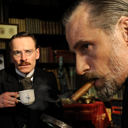 While Jung studies and beds Sabina (unbeknownst to his wife), he makes frequent trips to Vienna to visit his friend and mentor, the cigar-chomping Sigmund Freud (Viggo Mortensen). The two construct the foundations of early psychoanalysis but they have differing opinions on it. Freud is purely scientific and Jung is quite spiritual. They clash and talk but mostly, they just talk.